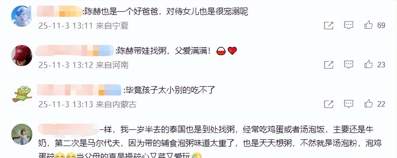 16. 网友纷纷打趣:“别人出国看雪山湖泊,陈赫出国专程寻粥,当代父母太不容易!”